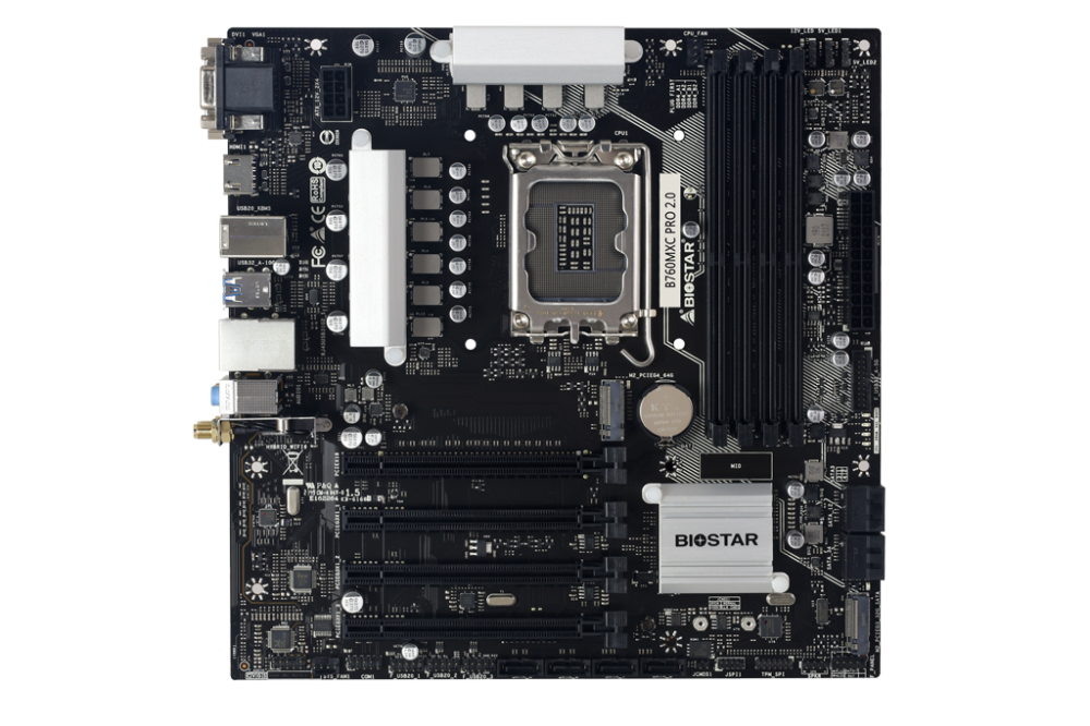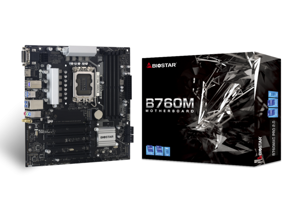 - تمتاز biostar b760mz-e pro بتوافقها الواسع مع مختلف أنواع الذواكر والبطاقات الرسومية، مما يسهل عملية تجميع جهاز حاسوب قوي ومتناسب.