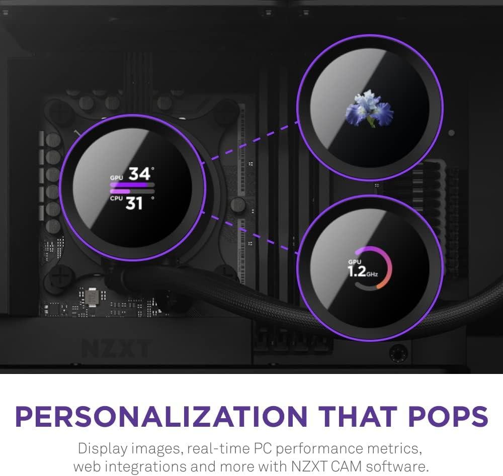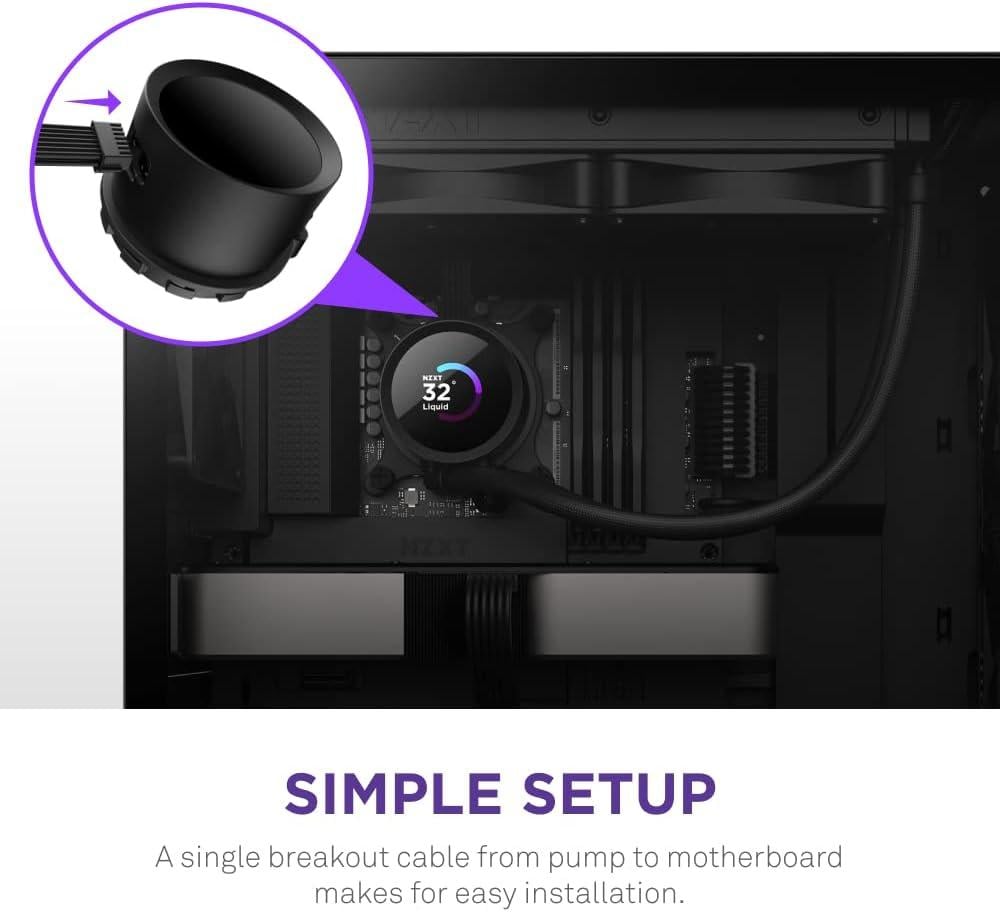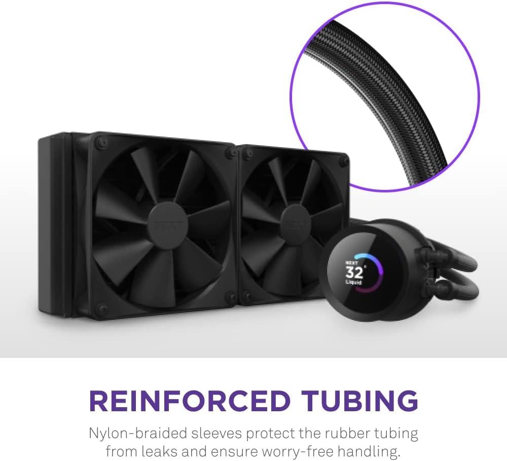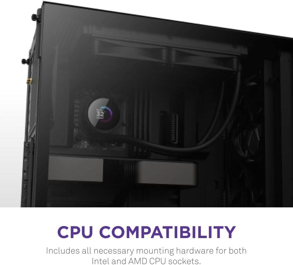 - مبرد مائي nzxt يأتي بلون أسود متجانس يواكب تصاميم الحواسيب العصرية، ويضفي حضورًا قويا على اللوحة الداخلية للجهاز.