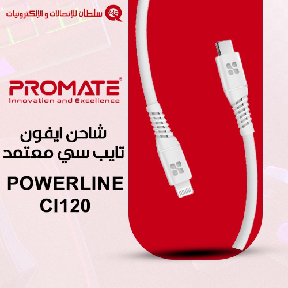 شاحن Promate PowerLine-Ci120 هو الخيار الأمثل لمن يبحث عن شاحن ايفون تايب سي يجمع بين السرعة والأمان والمتانة في الاستخدام اليومي.